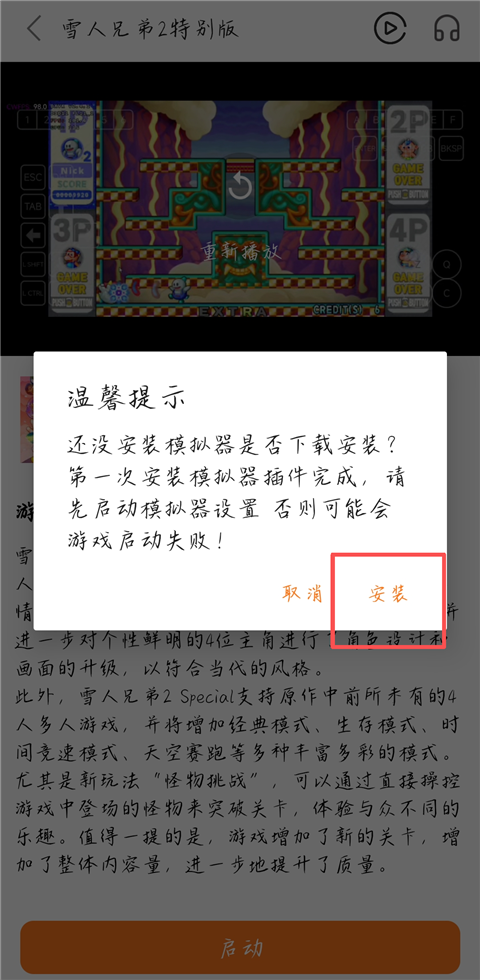 4、因为我们还没有安装相关模拟器,点击【安装】。