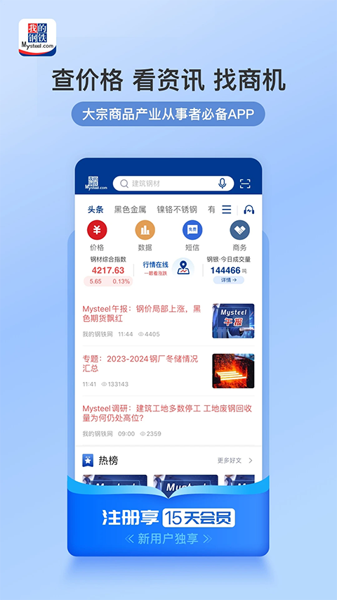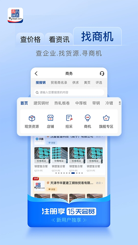 出差不方便?信息丰富,一键式定制,实时推送市场行情、钢厂调价、调查统计等信息。,商机不期而遇;
