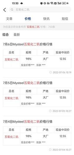 3、你可以查询五氧化二钒的实时价格。