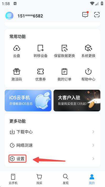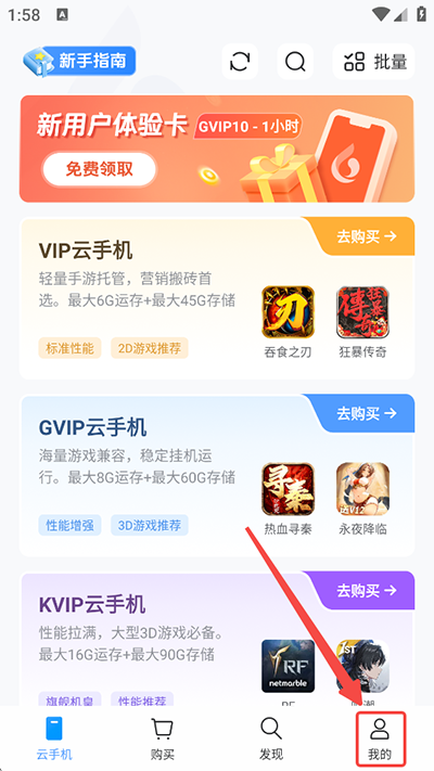 1、首先进入云手机首页后,点击右下方的【我的】进入个人中心;