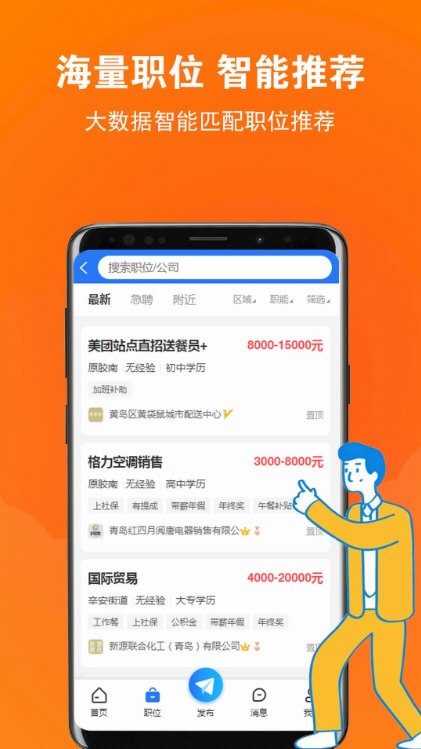 2、智能推荐,好工作来找你,根据搜索行为每日推荐匹配职位。