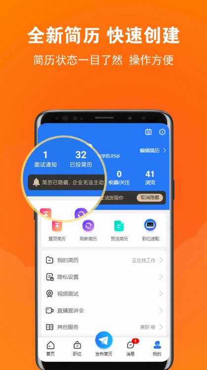 多类型模板:提供简洁版、完整版、视频版等简历模板,满足不同岗位投递需求。