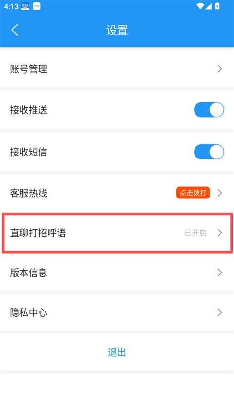 3、在设置页面中,点击"直聊打招呼语"选项,进入设置界面;
