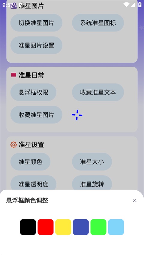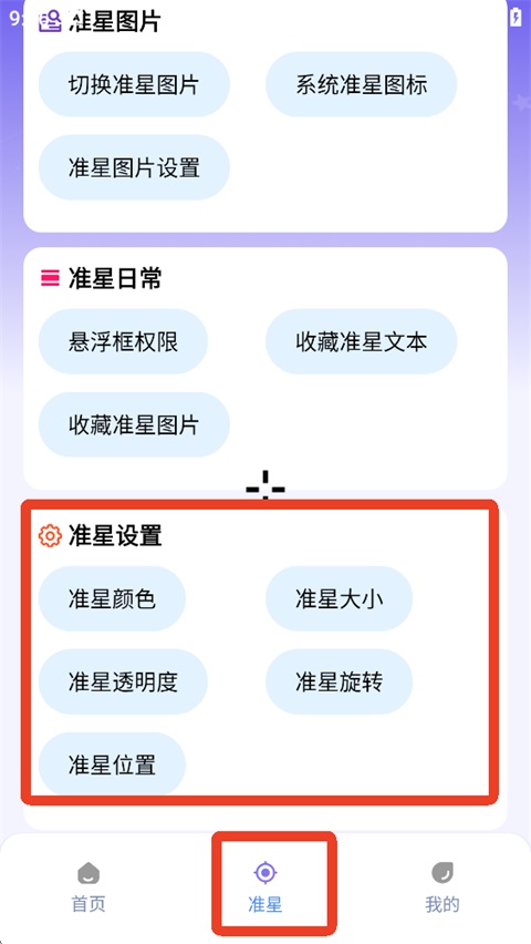 基础准星支持颜色、透明度、大小、角度等DIY设置。