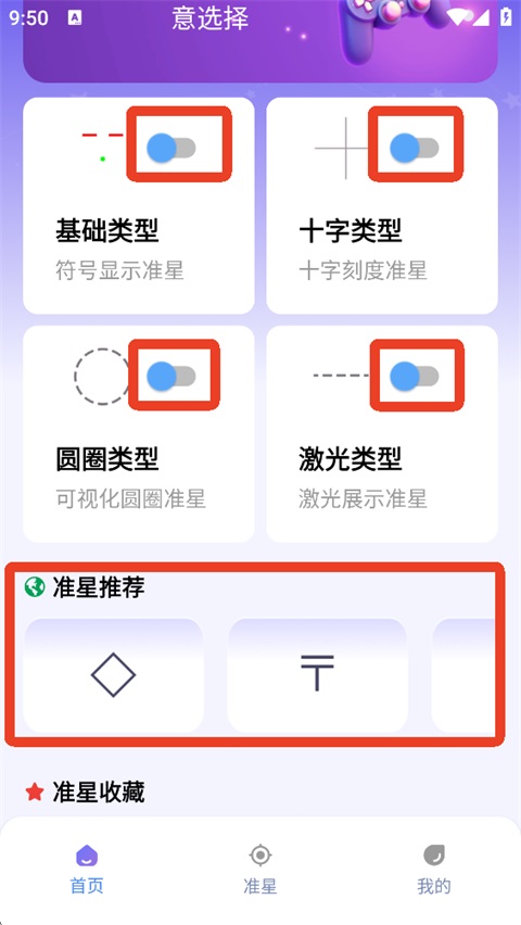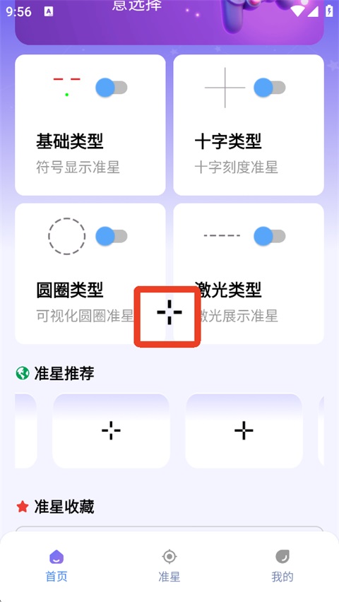 1、选择你想设置的准星,点击滑块按钮开启,或选择【准星推荐】中的准星。