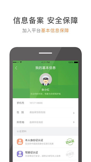 4、运行更规范,通过身份认证。车辆审核方可出车;