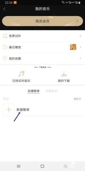 接着点击“新建歌单”。