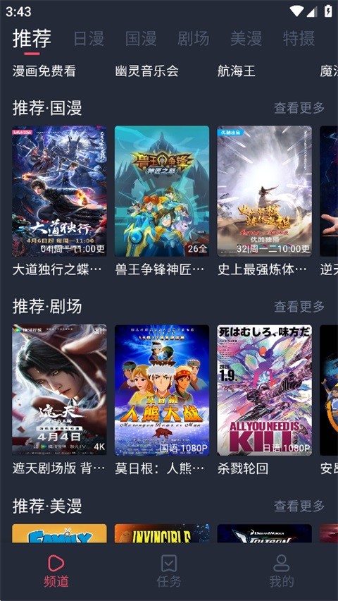 动漫共和国app提供海量免费动漫资源,包括日漫、国漫、剧场、美漫、特摄等,点击即可播放你喜欢的内容。