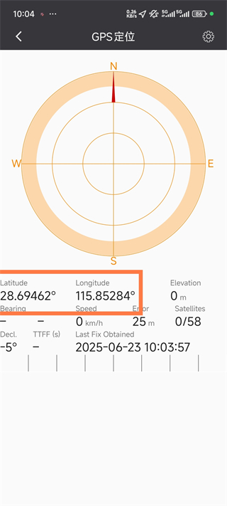 4、如果GPS定位成功就能显示出坐标,第一次使用请耐心等待几分钟。