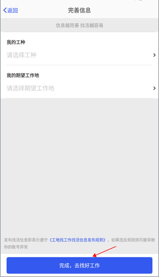 2、工人能够在平台自定义发布找活信息,通过简介的介绍让大家知道你具有的技能,轻松找活。