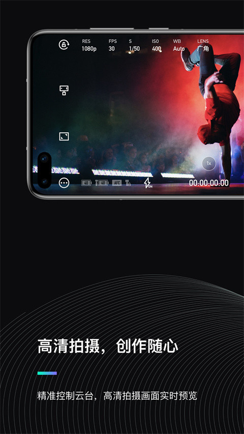 1、软件有两种模式可以选择,分别是相机模式和云台模式,相机模式可以对拍摄以及画幅、防抖等进行设置