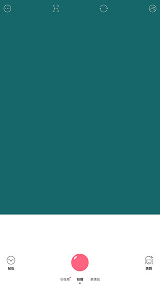 1、进入软件之后,我们就能看到当前的【拍摄内容】,通过左右滑动还可切换至长视频或者表情包的拍摄模式。