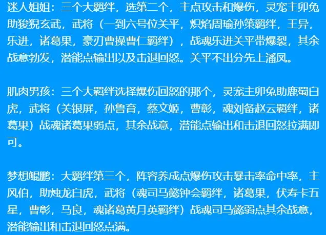 战魂:刷到什么用什么,直到凑齐任意整套,后期c位用爆裂/弱点,辅助用战役勃发/怒焰灭袭行了。(其实这个系统目前也就加加武将攻击力,战力了)