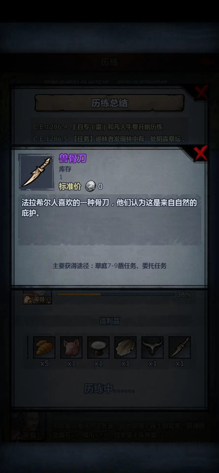 这里有个要注意的,选择地区历练后神器界面千万不能换成别的神器任务要不然历练是刷不出来神器道具的