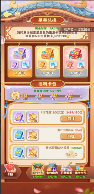 上面重复卡片累计的星数尽量等最后一天大概率是能兑换400星的!